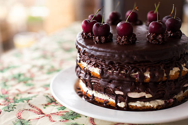 This deliciously moist Black Forest Cake is a cut above the rest with whipped cream, rich chocolate ganache, and sweet spiked cherries.
